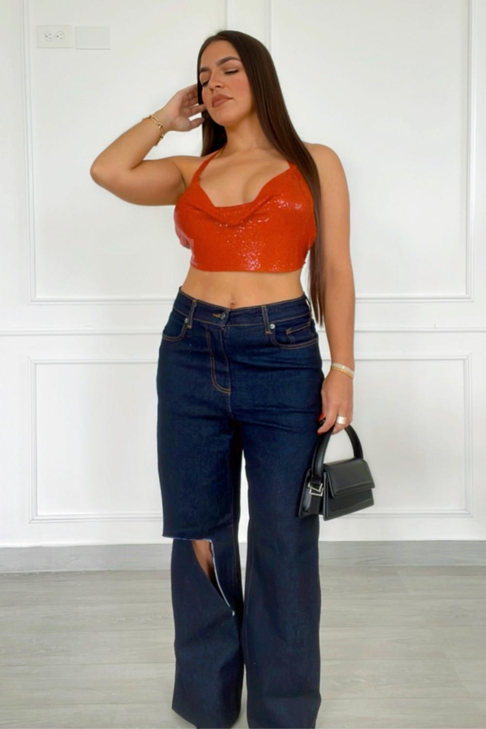 Hot red metallic halter top
